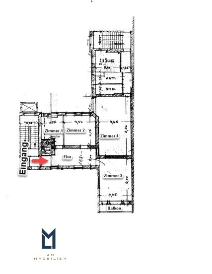 Die Büroeinheit verfügt über vier Zimmer, von denen eines als Durchgangszimmer gestaltet ist. Außerdem bietet sie zwei Bäder, eine Küche, sowie eine Kammer, die sich ideal als Kopierraum oder Lagerraum eignet. Besonders hervorzuheben sind das großzügige Entree und der Balkon, die der Einheit ein repräsentatives Ambiente verleihen.