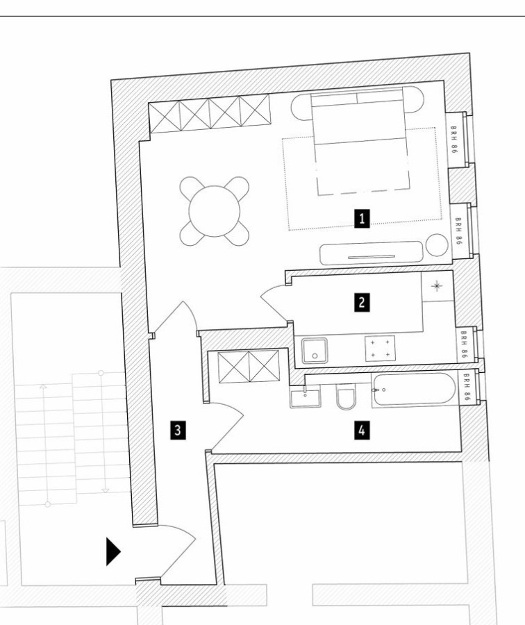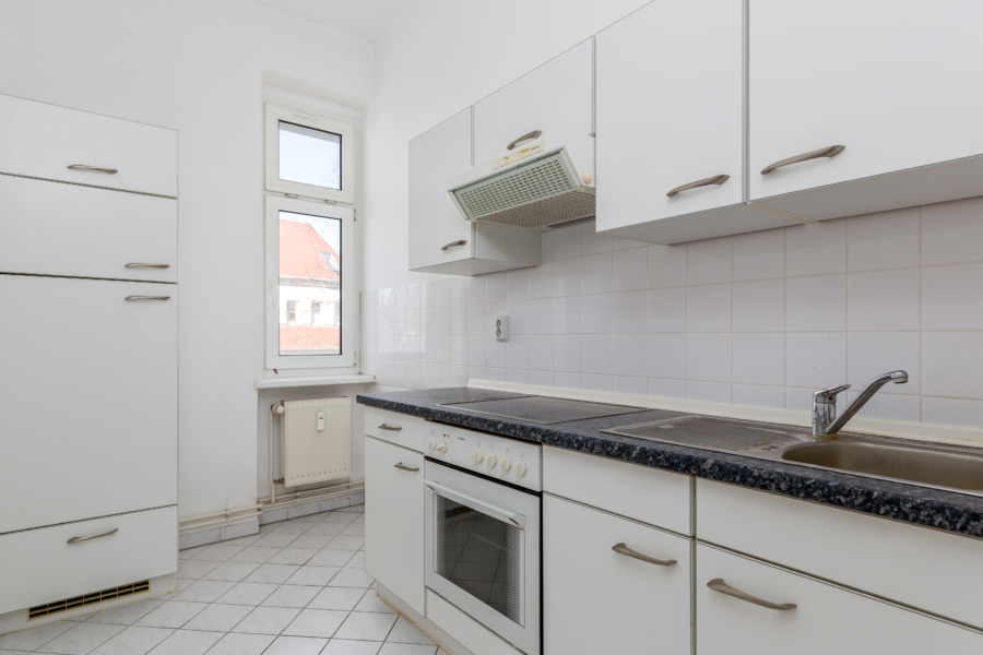 Die Wohnung betreten Sie über einen praktischen Flur, von dem aus Sie sowohl das helle Zimmer als auch das geflieste Tageslichtbad erreichen. Die Küche ist aktuell über das Zimmer zugänglich. Durch einen möglichen Wanddurchbruch zwischen Wohnraum und Küche ließe sich ein offener Wohn- und Essbereich schaffen, der dem Grundriss ein modernes und großzügiges Ambiente verleiht.