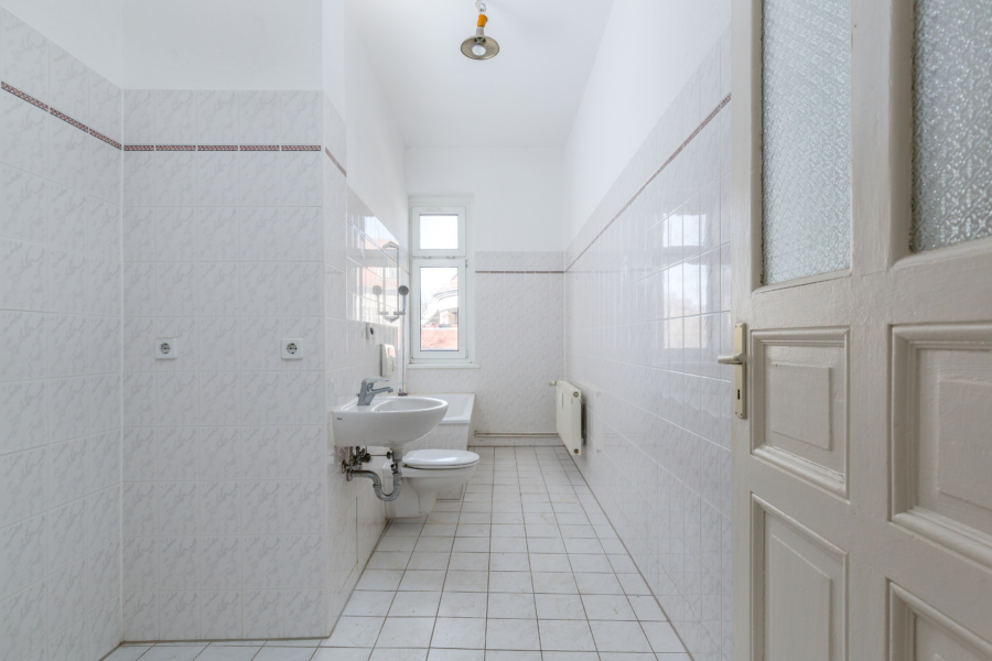 -gefliestes Bad mit Wanne und Tageslichtfenster