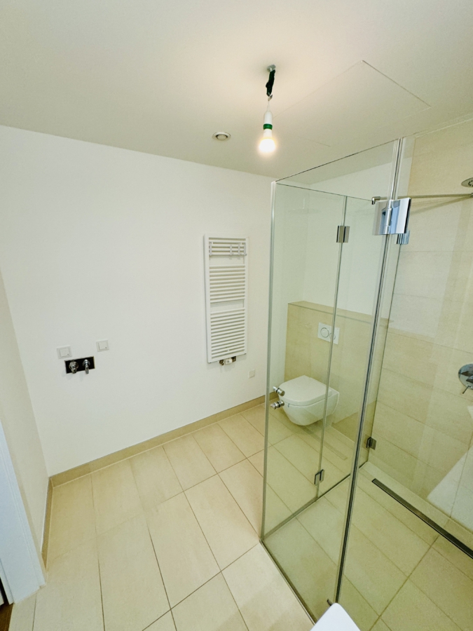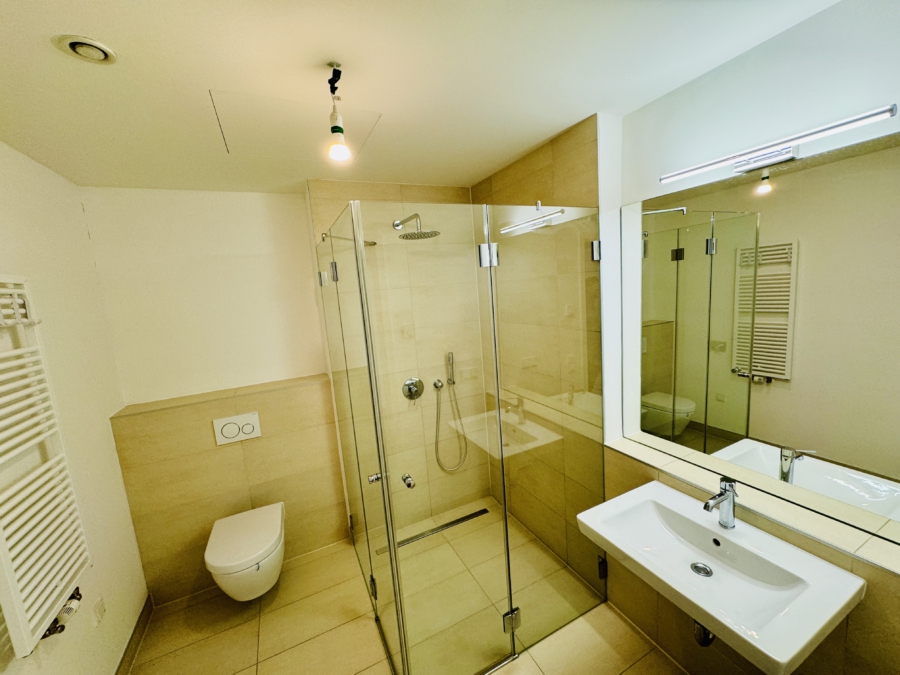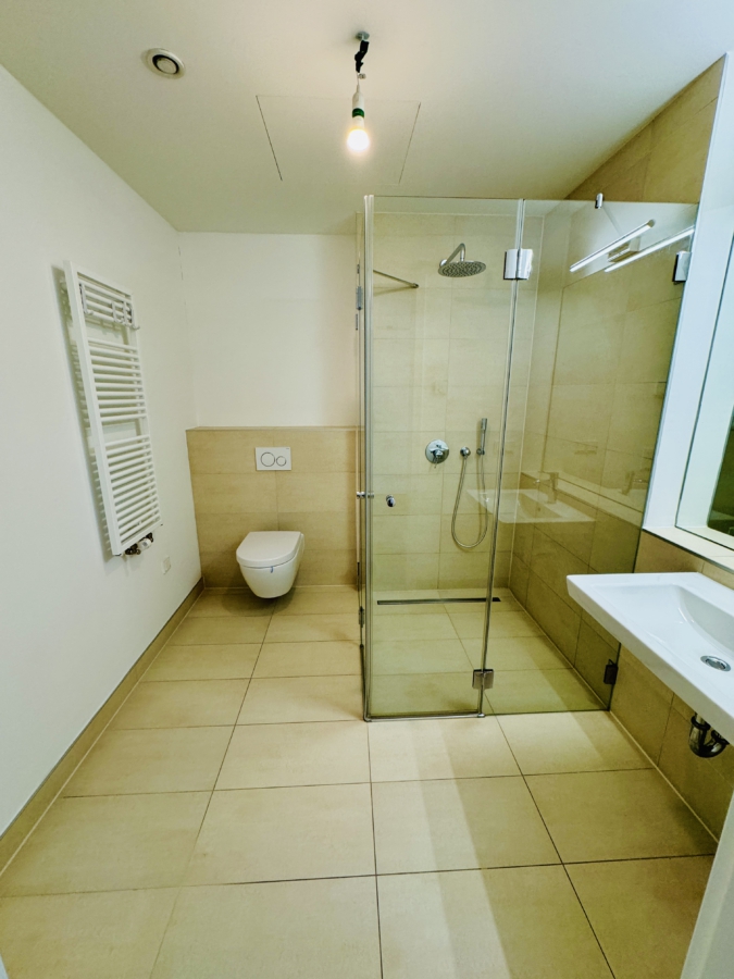 -modern gefliestes Duschbad (Rainshower Dusche) mit hochwertigen Sanitärobjekten von Villeroy & Boch