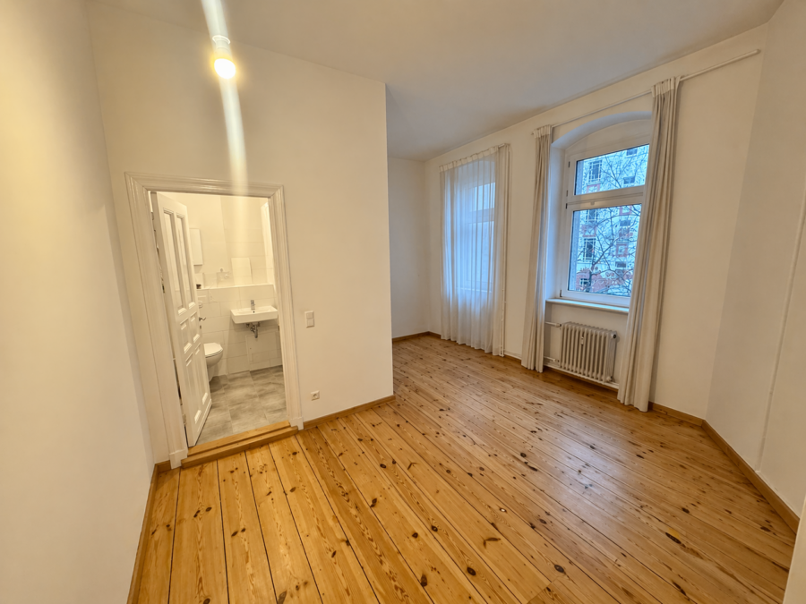 Diese charmante Altbauwohnung verfügt über zwei geräumige Zimmer, von denen eines als Durchgangszimmer mit offener Küche konzipiert ist. Ergänzt wird das Raumangebot durch ein großzügiges Hauptbadezimmer sowie ein zusätzliches Gästebad. Die Wohnung wurde im Jahr 2016 kernsaniert und befindet sich in einem sehr gepflegten Zustand. Sämtliche Räume sind ruhig zum begrünten Innenhof ausgerichtet. Dank der Süd-Ausrichtung präsentiert sich die Wohnung besonders hell und freundlich.