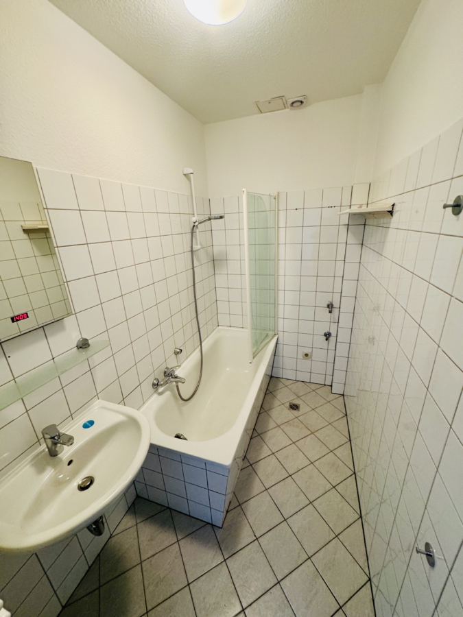 Die Einheit überzeugt mit drei gut geschnittenen Zimmern, die alle separat vom Flur zugänglich sind. Die Küche ist mit Spüle und Herd ausgestattet und bietet genügend Platz für einen Esstisch. Zwei Bäder runden das Angebot ab: Ein separates Bad mit WC sowie ein weiteres Bad mit Badewanne und praktischem Waschmaschinenanschluss.